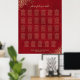 This 29 table crimson red and gold wedding seating chart is elegant, stylish, sophisticated, and glam. It has table assignments for 290 guests with 10 seats per table. The simple classic design features a script calligraphy title with ornate golden faux foil frills in the corners. There is space for the names of the couple and wedding date at the bottom. Classy, glamourous, and beautiful, this seating chart will add grace and style to your wedding reception while making it easy for your guests to find their seats.