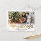 Customisez cette jolie carte postale de Noël moderne et moderne, simple et horizontale, avec un texte en faux or Merry et Bright sur blanc. Veuillez noter que l'or est imprimé couleur et n'est pas une feuille d'or réelle. Remplacez l'image du modèle par votre photo préférée et changez toutes les informations du modèle des deux côtés par la vôtre. Ce design a un libellé : "Vous souhaite une joyeuse saison des fêtes et une nouvelle année remplie de paix et d'amour." mais vous pouvez changer les mots avec votre propre. *Crédit Modèle photo : © StephaniePetraPhoto