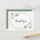 This gold geometric eucalyptus calligraphy thank you postcard is perfect for rustic wedding. The design features hand-drawn botanical green eucalyptus branches and leaves adorning an elegant frame. Customize the back of the postcard, including your names, return address and a thank you message. Or, leave the thank you message template section void to draught a few words on each card after they arrive. These cards can be used for a wedding, bridal shower, or any time you want to say thanks.