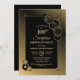 A modern geometric black and gold framed surprise 100th birthday party invitation.