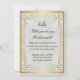 Planning a wedding? You need your friends to hold your hand, help you organize, and make you look perfect on your special day. Popping the question is easy with this will you be my bridesmaid card. Personalize the card by changing the text in the fields provided. You can change font style, size, and colour, as well as paper type and style.