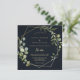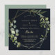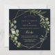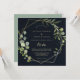 This gold geometric green blue wedding invitation is perfect for a simple wedding. The design features hand-painted beautiful green leaves in a dark blue background, adorning a gold geometric frame.