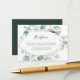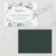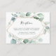 This wedding reception enclosure card features painted watercolor eucalyptus and botanical green leaves with a gold geometric frame.