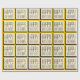 Gold Happy Birthday wrapping paper in a bold geometric pattern.