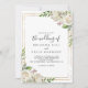 This gold geometric peony floral the wedding of invitation is perfect for a winter wedding. The design features beautiful hand-drawn white peonies bunched into neat bouquets with burgundy buds and green leaves, adorning a gold geometric frame.