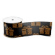 This elegant black and gold Christmas ribbon will be sure to add a very stylish touch to your gift wrapping for the holiday season. The pattern features golden gift boxes with large bows repeated across a black background.