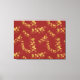 Gold Gingko Balboa Leaves on Dark Red Background Canvas Print