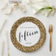A beautiful glitter gold fifteen birthday paper plate. Please note there is not actual glitter on the paper plate, but a design effect. You will be able to easily personalize with the name and birthday date. This beautiful 15 birthday paper plate will be sure to add a "sparkly" touch to her birthday party!