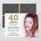 A chic, elegant, 40th birthday photo invitation you can personalize and send out for your fortieth birthday party celebration. The words "40 and Fabulous" in goldpink glitter and black are set using modern typography. Simply add your own personal details and your own photo. There's a black and white diamond pattern on the back of the card with gold glitter ribbons. If you need any help or matching products, please contact us through our store.