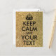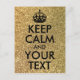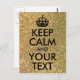 Black customizable "Keep Calm and Your Text" design against a photo of gold bokeh glitter (faux glitter). Edit the text to create your own postcard with a custom text message. If you need smaller font for a longer word, we suggest selecting the entire design before reducing the size.