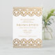 The perfect invitation for a luxe and elegant art deco rehearsal dinner, this invitation design features a pattern of faux glittery gold art deco geometric fans and chic type with a matching patterned backer.