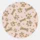 Gold Glitter Beige Blush Pet Paw Bone Puppy Dog Classic Round Sticker