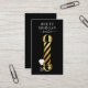 An edgy modern gold glitter and black striped barber's pole barber hair stylist business card. For men's hair cutting and grooming. Shaves, beard trims and all barber services.