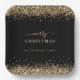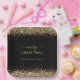 Gold Glitter Black Name Merry Christmas Paper Plate