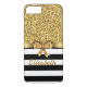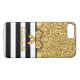Gold GLITTER BLACK white stripe GOLD BOW MONOGRAM Case-Mate iPhone Case