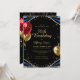 Chic woman's 50th birthday invite with gold glitter, blue agate marble swirls, red and gold glitter balloons and elegant calligraphy script lettering. Easy to personalize to celebrate the woman turning fifty.