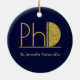 A PhD graduation ornament with a (non-foil) gold glitter and blue design. Simply customize with your graduate’s name, add this ornament to your cart, and give this keepsake of their major achievement.