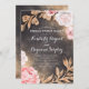 Soft blush pink flowers and gold glitter rustic country engagement party invitations.