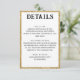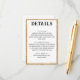 Gold glitter border and white wedding details card. Personalize it with your personal wedding details.