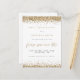 Gold Glitter Borders Script Wedding Save The Date. A convenient postcard to invite your guests to save your date. Gold faux glitter at the top and bottom edges and an informal set script for Save Our date. Easily personalise the rest of the text to your details.