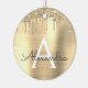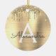 Gold Glitter Brushed Metal Monogram Name Ceramic Ornament