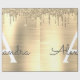 Gold Glitter Brushed Metal Monogram Name Wrapping Paper