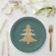 Gold Glitter Christmas Tree Pine Green Peace Paper Plate