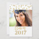 Graduation party invitation custom photo card class of 2017 in glamourous gold glitter print effect confetti pattern and hand lettered style text.