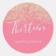 Gold Glitter Confetti Pink 13th birthday party Classic Round Sticker