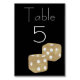 This glamourous custom table number card features a gold and black casino design. An image of large, gold glitter dice is printed across the centre over a black background. You can personalize the table card to include your own custom name or text.
