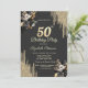 Gold Glitter Drips Black Roses Dark 50th Birthday Invitation
