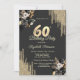 Gold Glitter Drips Black Roses Dark 60th Birthday Invitation