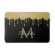 Gold Glitter Drips Monogram Elegant Girly Script Bath Mat