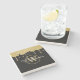 Chic gold glitter drips, script name, and gold monogram on a black background coaster. You can personalize the name, monogram and customize the font and colours to create your own unique design. Designed by Thisisnotme©