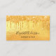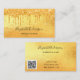 An elegant and glamourous business card on a faux gold looking background decorated with faux glitter drips, paint dripping look on front. Elegant white hand lettered style script. Personalize and add Your name, title, contact info and your own QR code to your website address.