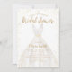 Elegant bridal shower invitations feature white wedding dress with sparkle faux gold glitter bridal shower script.
