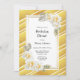 A gold glitter diagonally striped bordered floral birthday dinner party invitation.