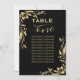 These elegant gold table number 1 seating chart cards are perfect for a simple wedding. feature a simple yet elegant design with gold script calligraphy on a black background with a frilly gold faux foil floral filigree in the corners.