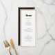 Clean and elegant text is easily personalized on this vertical and skinny format event menu. Black and white is sophisticated paired with a frame of faux gold glitter. For an extra personal touch, add your favourite engagement photo or custom text to the back using the "customize further" option.