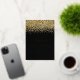 The solid colour black background features a decorative faux golden yellow and gold glitter digital art graphic design along the top border.