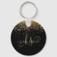 Glam Gold Glitter Elegant Monogram Keychain, Easily personalize this trendy chic keychain design featuring elegant gold sparkling glitter on a black background. The design features your handwritten script monogram with pretty swirls and your name.