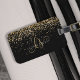 Glam Gold Glitter Elegant Monogram Luggage Tag. Easily personalize this trendy chic luggage tag design featuring elegant gold sparkling glitter on a black background. The design features your handwritten script monogram with pretty swirls and your name.