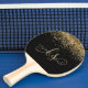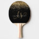Glam Gold Glitter Elegant Monogram Ping Pong Paddle. Easily personalize this trendy chic ping pong paddle design featuring elegant gold sparkling glitter on a black background. The design features your handwritten script monogram with pretty swirls and your name.