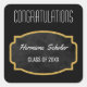 Popular black and faux gold glitter personalized class year graduation stickers- Black background with chalkboard look tag with gold glitter border. Reads CONGRATULATIONS in elegant, Art Deco lettering. Student's name in script and custom "Class of" with graduation year printed inside chic frame. Elegant black and gold congratulations graduation stickers. Great personalized for graduation party, graduation announcement envelope seals, or party favours. Perfect chalkboard theme graduation stickers for future teachers. Click Customize option to change text colours, size, and font styles.