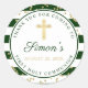 Gold Glitter Green Striped First Holy Communion Classic Round Sticker