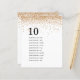 Gold Glitter Guest Names Table Number. A size 4.5 x 5.6” semi-gloss 110lbs weight, which is of similar thickness to a postcard, with ONE per sheet. Simple contemporary style with the table number larger in stylish lowercase and your guest names for the table beneath and lots of of white space with a border of gold faux glitter at the top. Easily personalise the text to your own details. The same design is on the back
