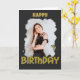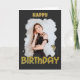 custom photo happy birthday girl with gold glitter letters and a black crop brush frame wish your friend girlfriend lover a happy birthday with this black and gold trendy glam card!