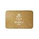 Faux Gold glitter keep calm and sparkle on bath mat. Personalized keep calm and your text non slip bath mat. Create your own funny keep calm and carry on parody rug for chic bathroom. Vintage typography template design with elegant crown. Other Cute keepcalm examples: Keep calm and party on. Keep calm and dance on. Keep calm and sparkle on. Original keepcalmandcarryon gift ideas for men women and kids. Make your own humourous quote for yourself, friends and family, birthday, wedding party etc. Unique and trendy home decor products. Custom background colour. Available in small medium and extra large big size. Stylish interior decoration with golden background texture. Shiny sparkly sparkles and glittery glimmers.