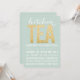 GORGEOUS pastel mint blue green coloured modern typography yet with a gorgeous soft vintage look and feel. Add your own text to the template to create this popular, quality, professional, printed glimmering kitchen tea invitation flat card. Gorgeous SOFT mint coloured paper background with stunning glimmering gold typography.