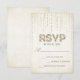 This stylish wedding RSVP card design by The Spotted Olive™ features a soft background with an image of streaming gems coming down from the top and the word "RSVP" filled with an image of gold glitter. PLEASE NOTE: THIS DESIGN ONLY FEATURES A PRINTED IMAGE OF GLITTER; THERE IS NO PHYSICAL GLITTER USED OR INCLUDED; THERE ARE NO EMBELLISHMENTS. THIS IS A FLAT PRINTED INVITATION. TIP: If you would like a little shimmer to your invitation, upgrade to the metallic paper. Click the "Customize It" button to go to the design tool where you can change the font, type size, type colour, text positioning and more. Copyright 2014-Present | The Spotted Olive™ | All Rights Reserved
